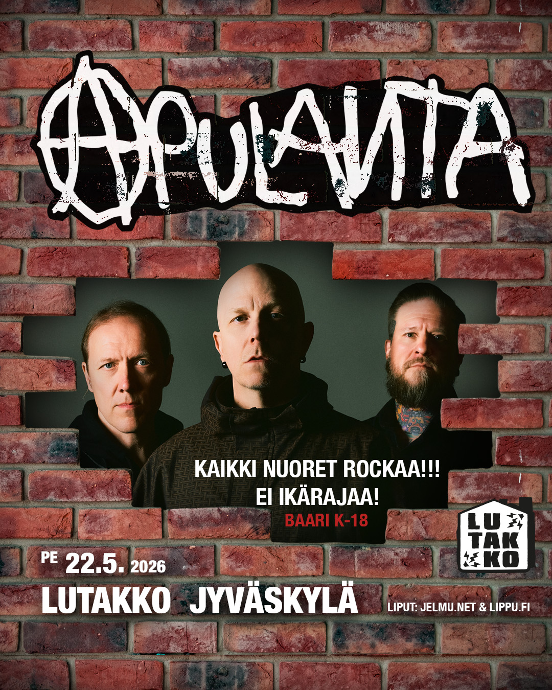 Tanssisali Lutakko ja Apulanta ovat kulkeneet rinnakkain suomalaisen live-musiikin historiassa jo vuosikymmeniä. Ensimmäinen Apulanta-keikka nähtiin Lutakossa helmikuussa 1996, eli liki 30 vuotta sitten. Yhteensä bändi on noussut Lutakon lavalle huikeat 25 kertaa! Apulanta tunnetaan tinkimättömästä asenteesta ja voimakkaasta lavapreesensistä, ja Lutakko tarjoaa juuri oikeanlaiset puitteet tämän kaiken välittymiseen.