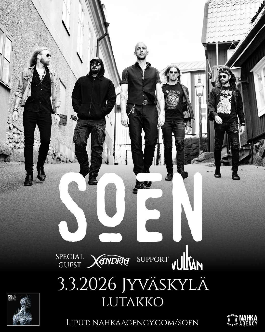 Ruotsalainen Soen julkaisee tammikuussa uuden albumin ja tuo levyjulkkarikiertueensa peräti kuuteen suomalaiskaupunkiin. Maaliskuun 3. päivänä Jyväskylän Lutakosta starttaava kiertuepätkä kattaa lisäksi keikat Tampereella, Turussa, Oulussa, Seinäjoella ja Helsingissä. Järjestyksessään seitsemäs Soen-albumi ”Reliance” julkaistaan sopivasti ennen kiertuetta, tammikuun 16. päivänä.